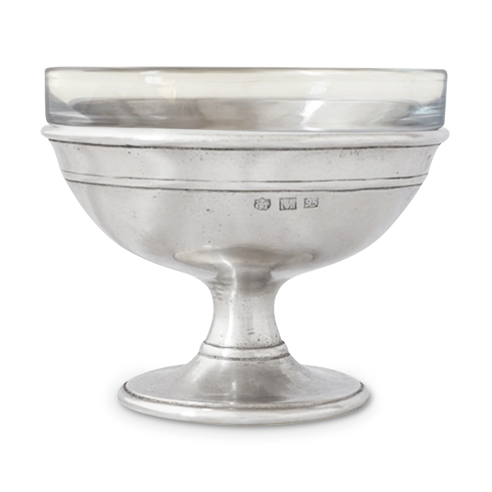 Ice cream never looked so inviting. This glass and pewter dessert dish is an elegant way to put the finishing touches on a great meal. Or fill it with olives or nuts at cocktail hour. The removable glass insert is dishwasher safe.